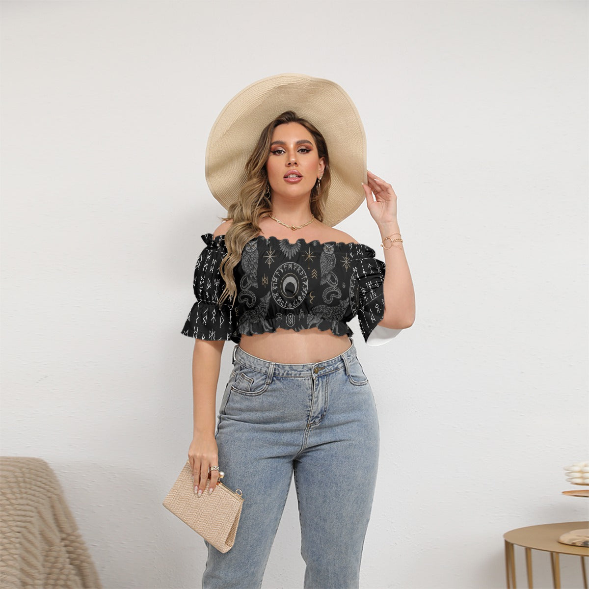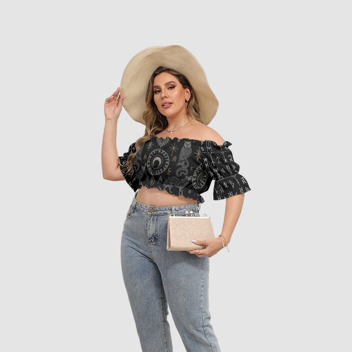 Alternativ Slavic Goth Top med Flæse og Magiske Mønstre Plus Size