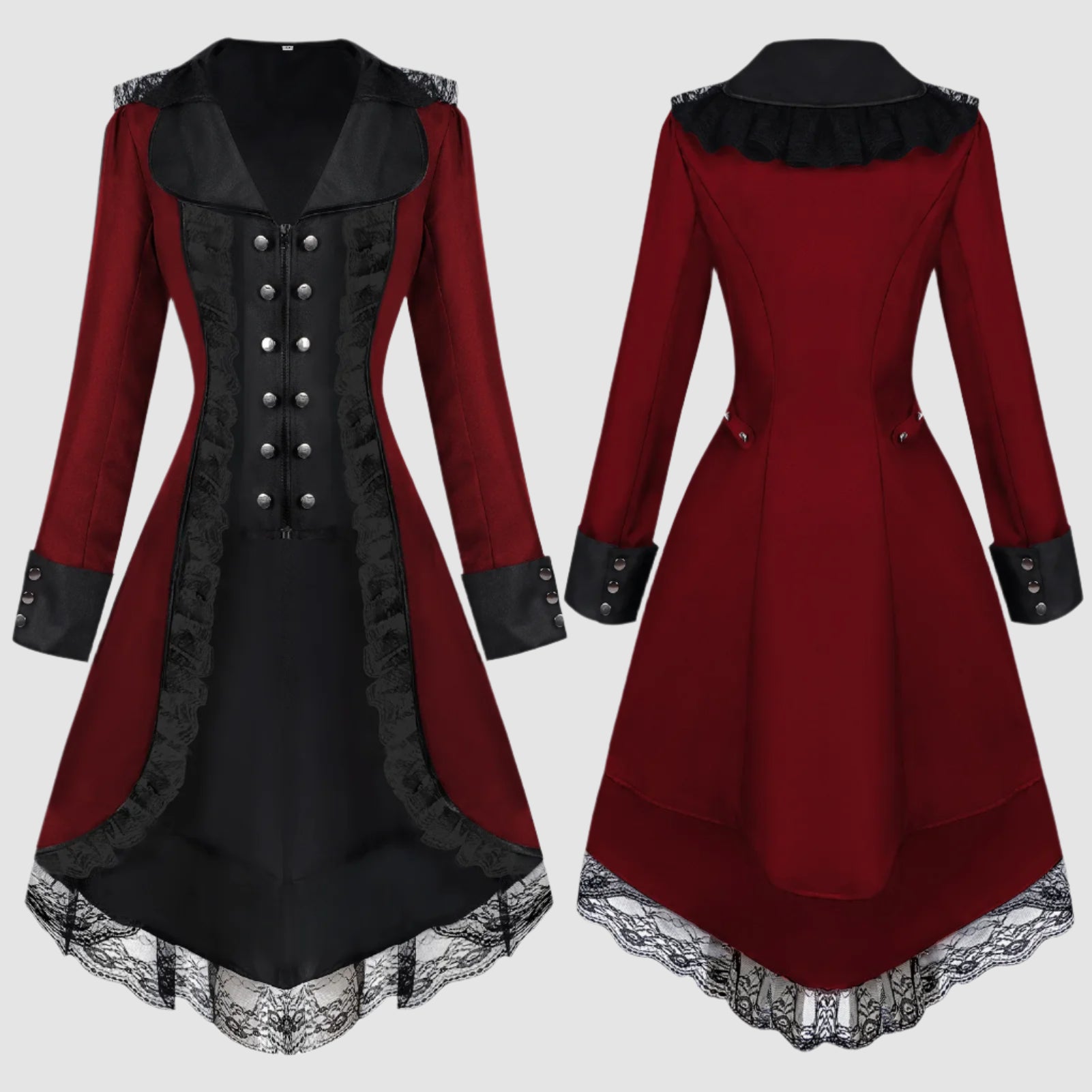 - Snit: lang, tætsiddende jakke med blondedetaljer